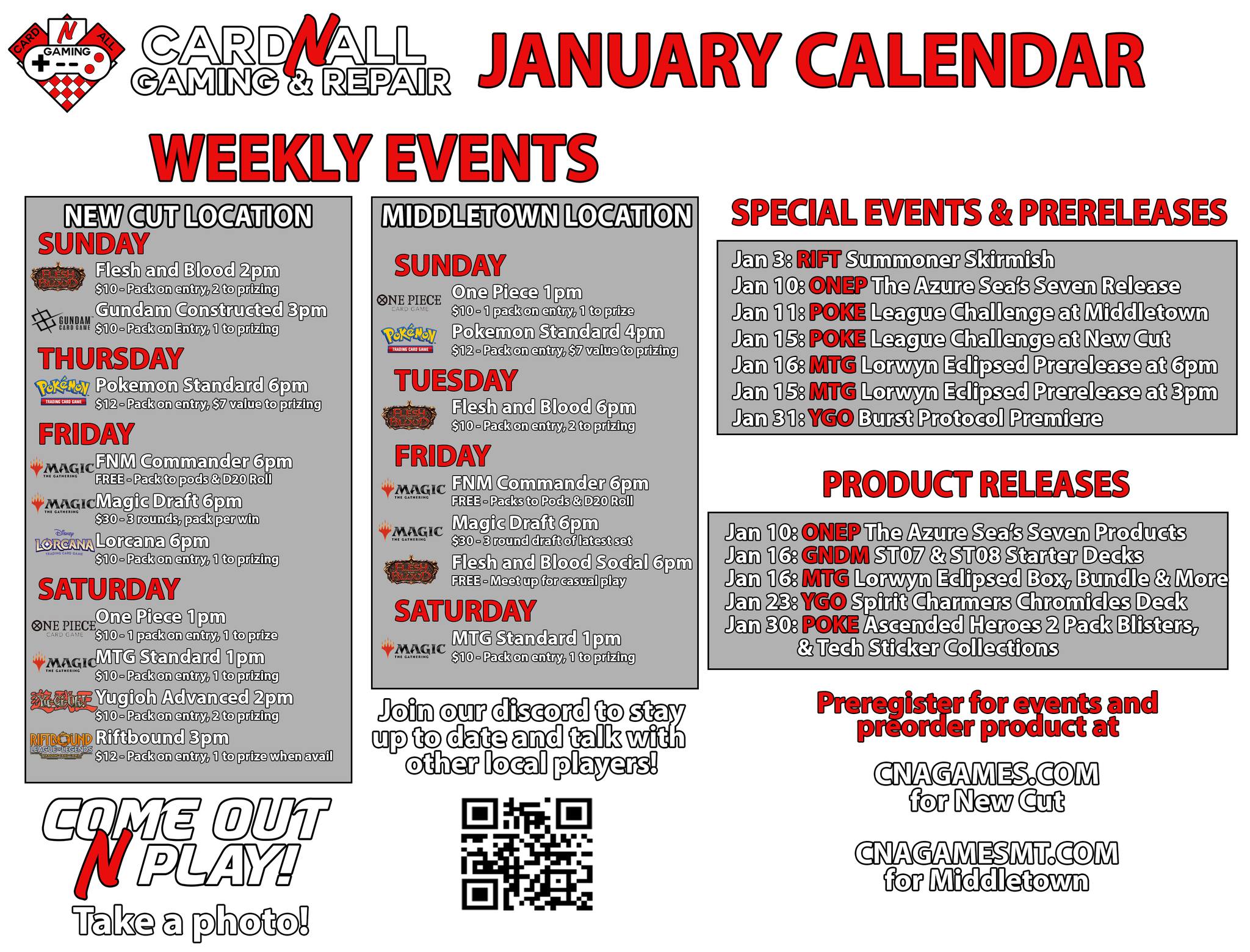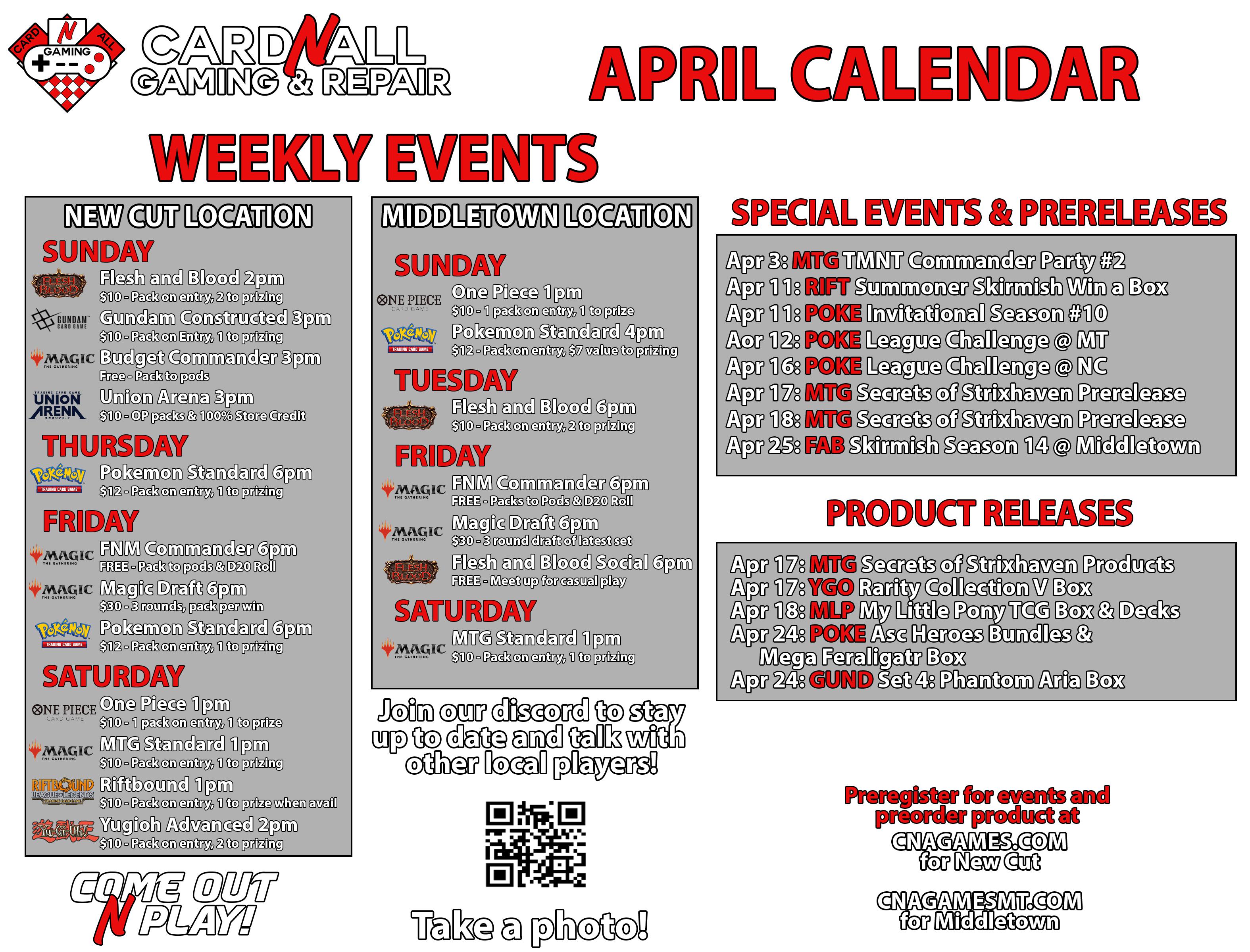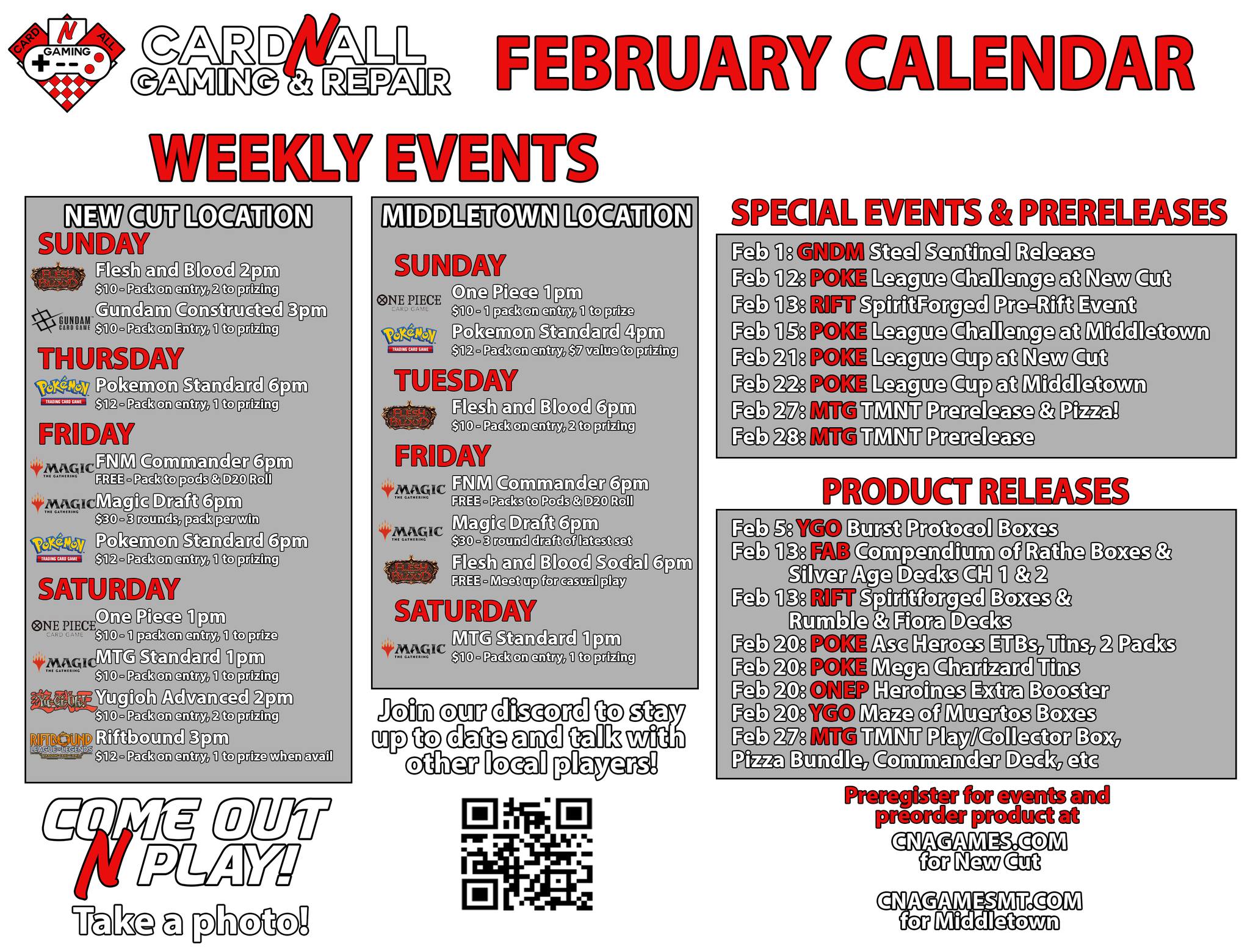 Sign up for upcoming tournaments, prereleases, and other events. Often time seats are limited, so you'll need to do this to secure your spot!